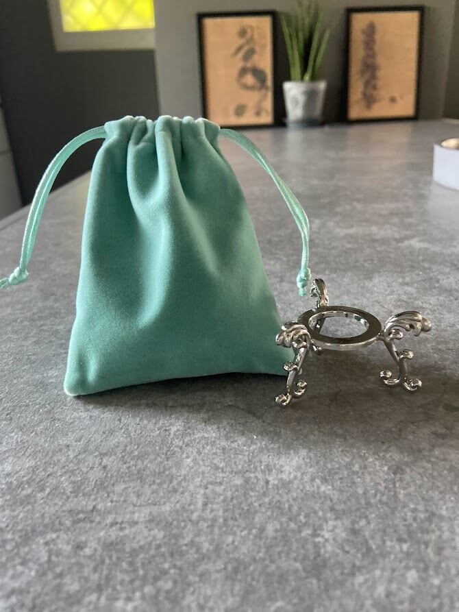画像の台座と持ち運び用のベルベット袋をお付けいたします