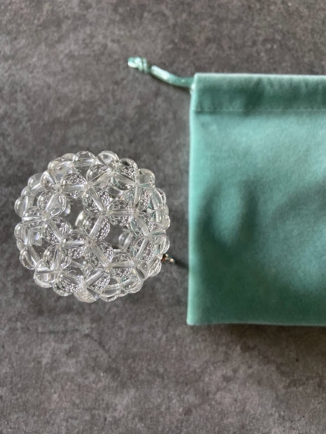 8ミリ水晶で作る神聖幾何学 フラーレン クラシック台座、ベルベット袋付き! 浄化に瞑想のお供に!【最強のパワーが宿る】バッキーボール