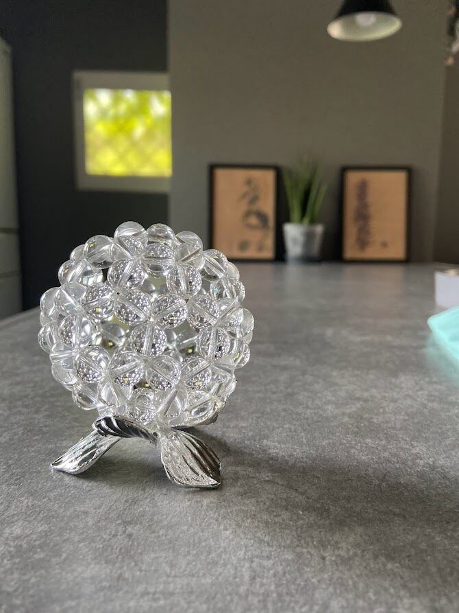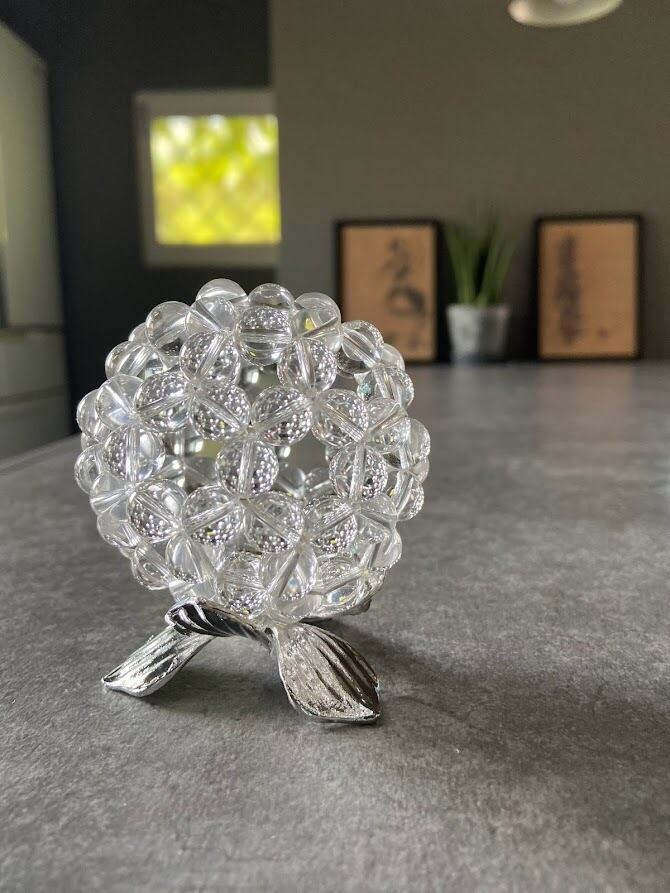 宇宙エネルギーを取り込み放出する循環を絶え間なく繰り返す形を水晶球で繋ぎ合わせて形作るオブジェ。