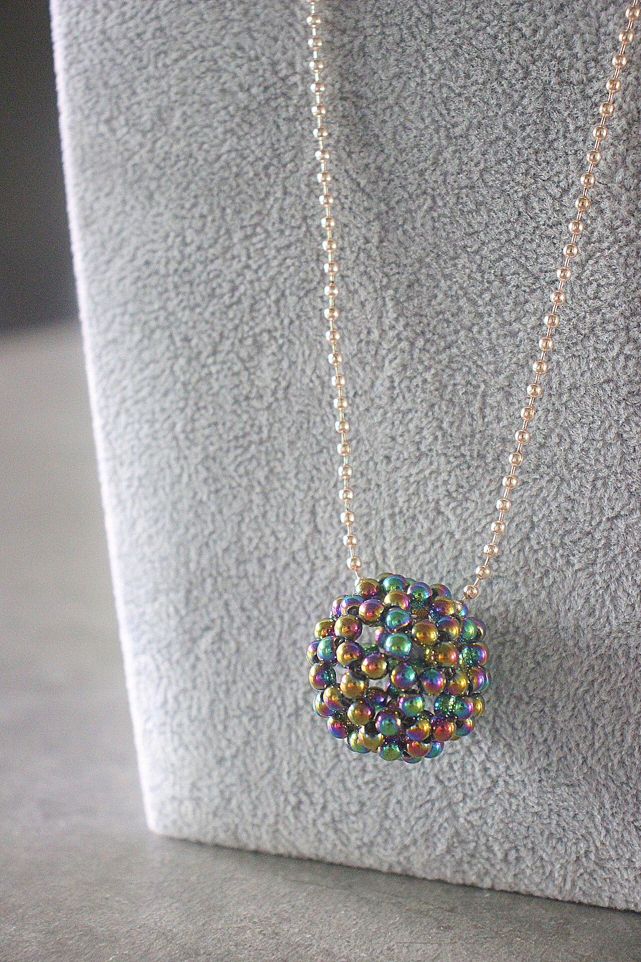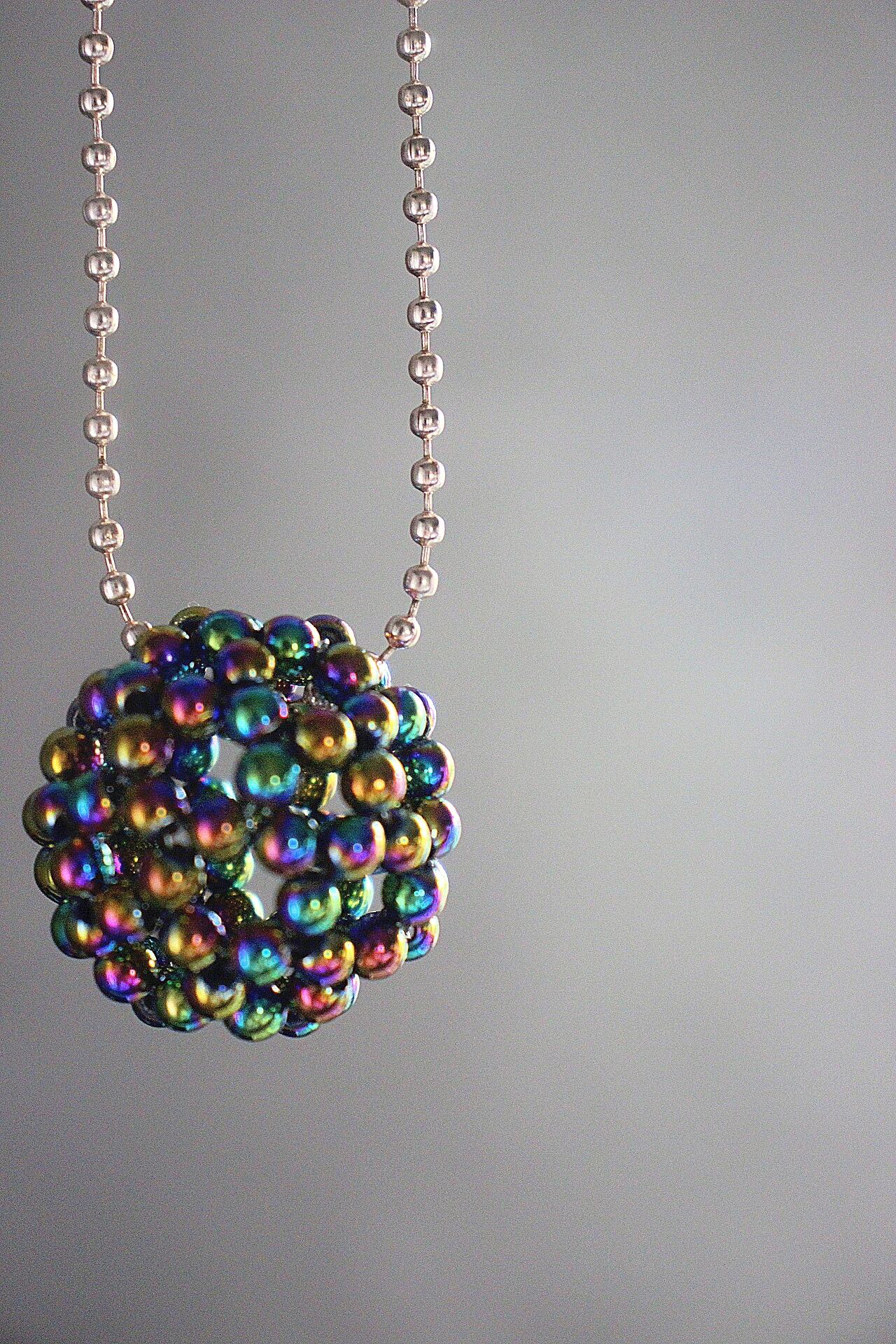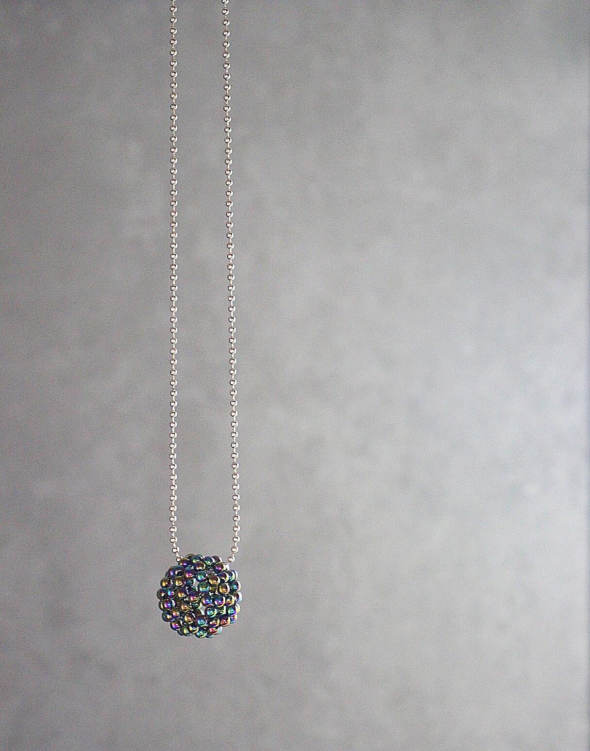 神聖な幾何学と邪気から身を守るヘマタイトを使用して作られた、レインボーカラーのフラーレンネックレスです。このネックレスは、特殊な技術によってレインボーカラーの輝きを放っており、美しいデザインが目を引きます。